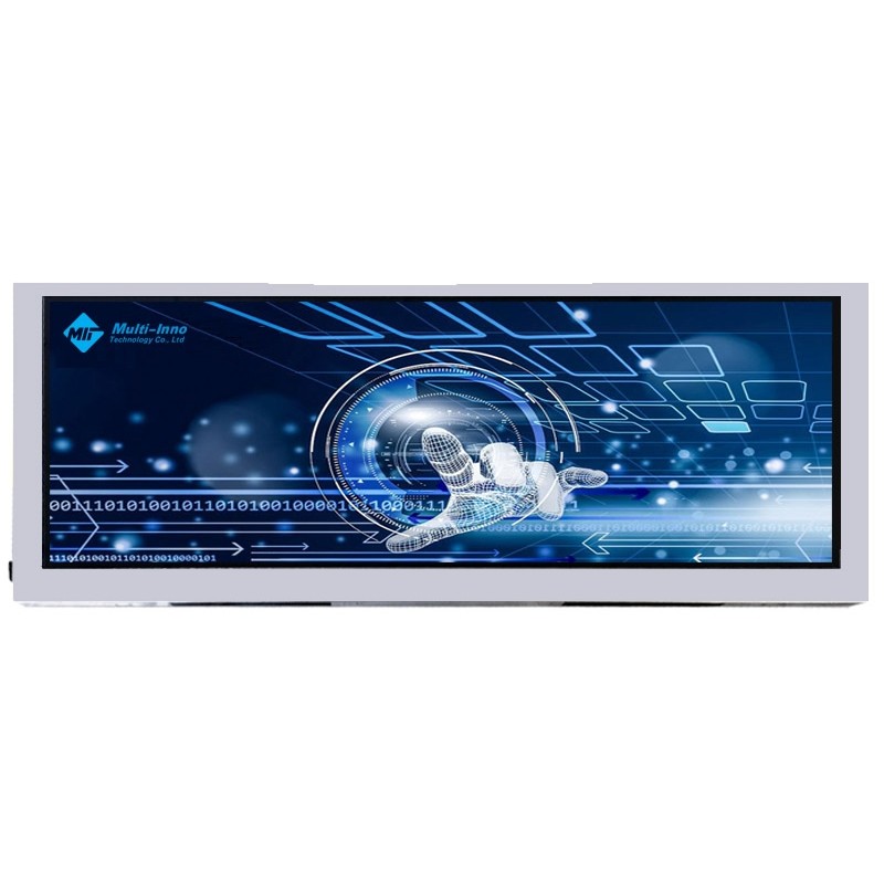 Pantalla TFT estilo barra de 10,25 pulgadas legible bajo la luz del sol, interfaz LVDS de 600 cd/m2, vida útil de 30 000 horas de retroiluminación.