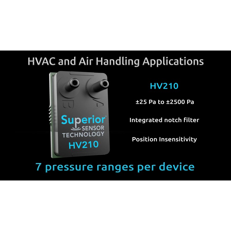 La familia de sensores de presión diferencial de la serie HV de Superior Sensor Technology ofrece los sensores de presión diferencial más flexibles y de mayor rendimiento de la industria, optimizados para aplicaciones de HVAC (calefacción, ventilación y aire acondicionado). Los rangos de presión objetivo van desde ±0,1 inH₂O ( columna de agua) hasta ±60 inH₂O ( ±25 Pa a ±15 kPa), con una resolución líder en la industria de 16 bits para cada rango.