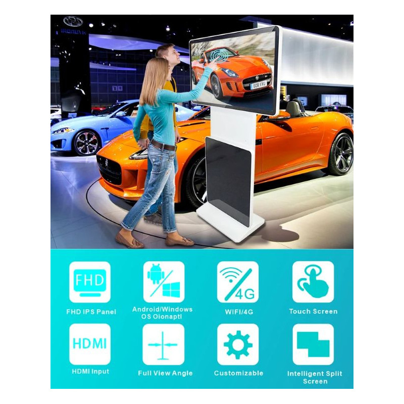Its auto 360° rotation allows the display to be viewed from any angle, making it perfect for retail stores, trade shows, exhibitions, and special events. Whether you want to engage customers on the sales floor or create an immersive exhibition experience, this kiosk provides a dynamic, interactive, and versatile solution for modern digital signage.